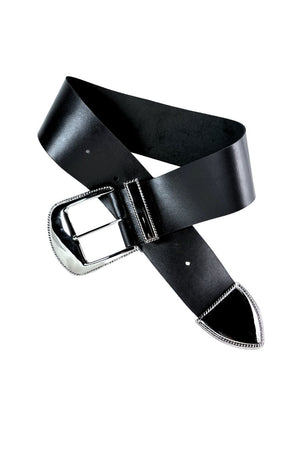 - Thick cow leather belt with Chunky Western Buckle detail